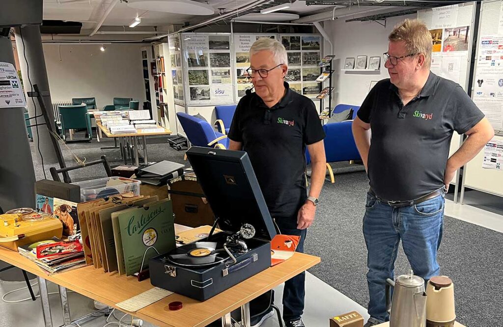 Per Bunnstad inledde med att berätta om Skivaryd varpå Lasse Lindblad visade var Skviaryd har samlingen med över 1 000 skivor.