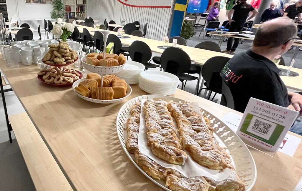 Därefter följde samling i serveringslokalen. Här hade Inger, Lena och Vivi dukat upp ett rikligt fikabord.