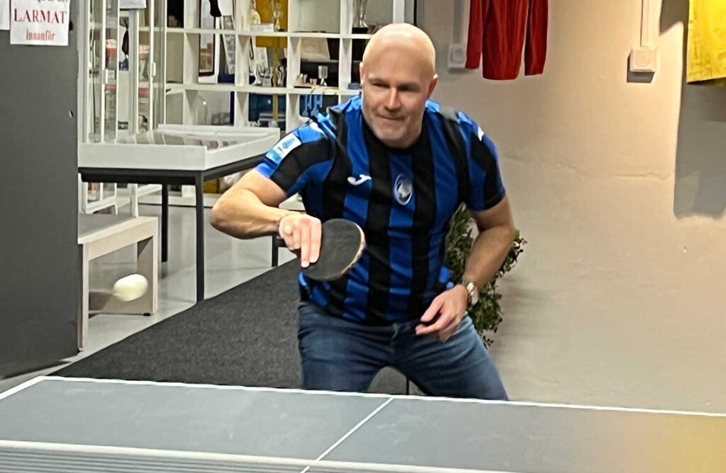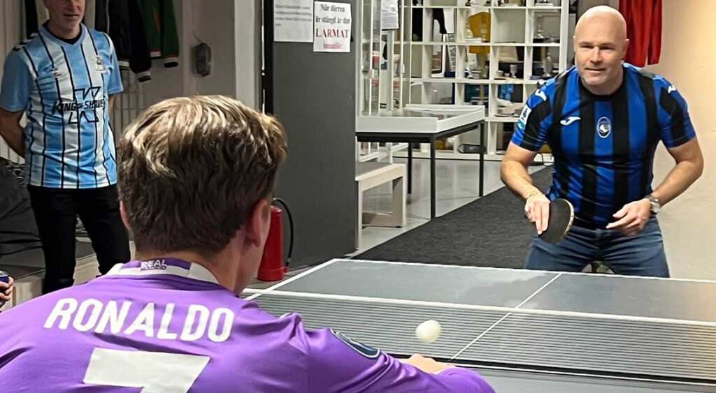 Jan Aronsson guidade i lokalerna och alla fick chansen att använda fotbollsspel och ishockeyspel.