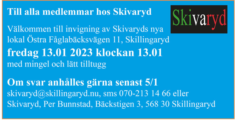 Välkommen till invigning Av Per Bunnstad Publicerat 29 december 2022 Nyheter Alla medlemmar välkomnas till vår invigning
