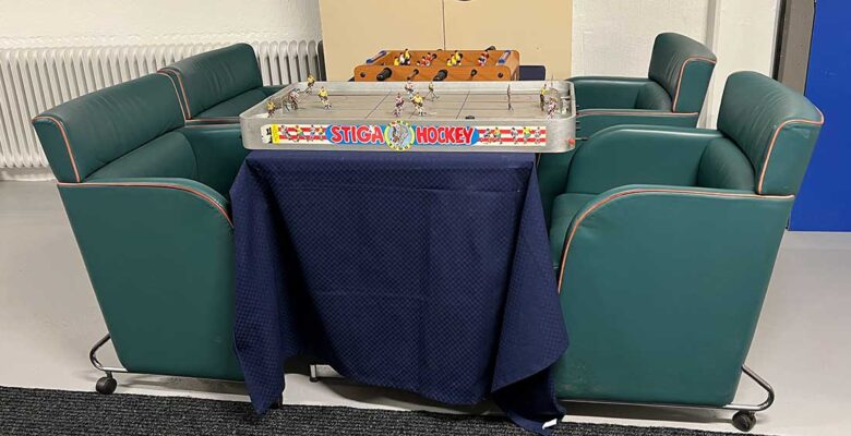 Rättare sagt får vi säga att ett av våra ishockeyspel och fotbollsspelet flyttats ut ur idrottsmuseet och finns nu mitt emot. Där kan man slå sig ned för att spela lite matcher.
